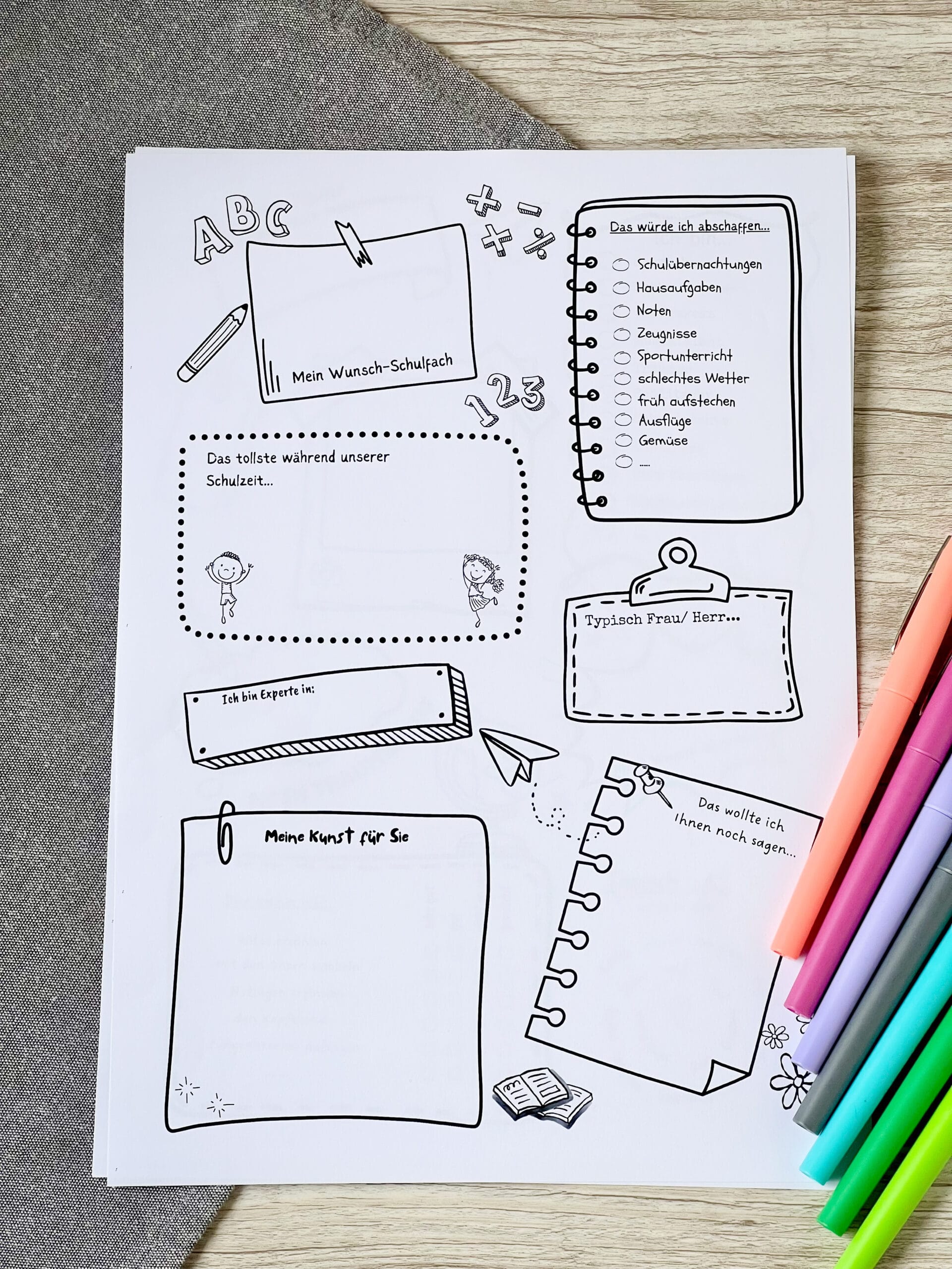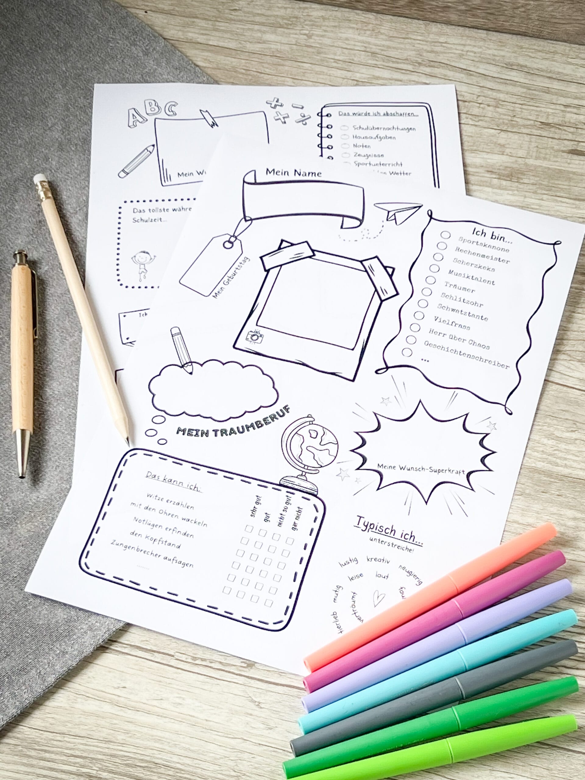 Nach Wunsch die Vorlagen ausdrucken, ausfüllen, zusammenheften und fertig ist ein buntes Erinnerungsalbum.