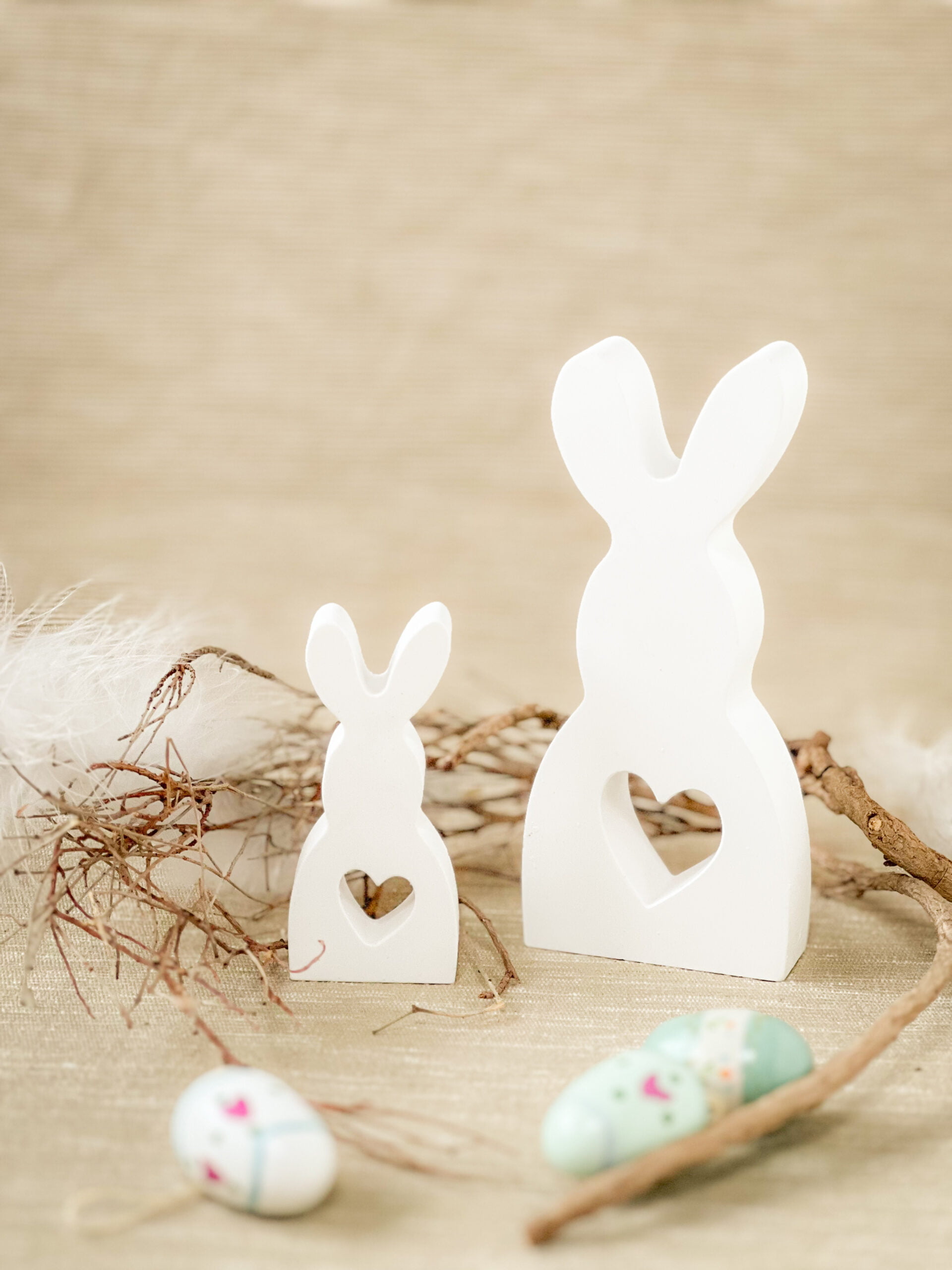 Die hübschen Hasen sind aus Giesspulver und können ganz einfach individualisiert werden.