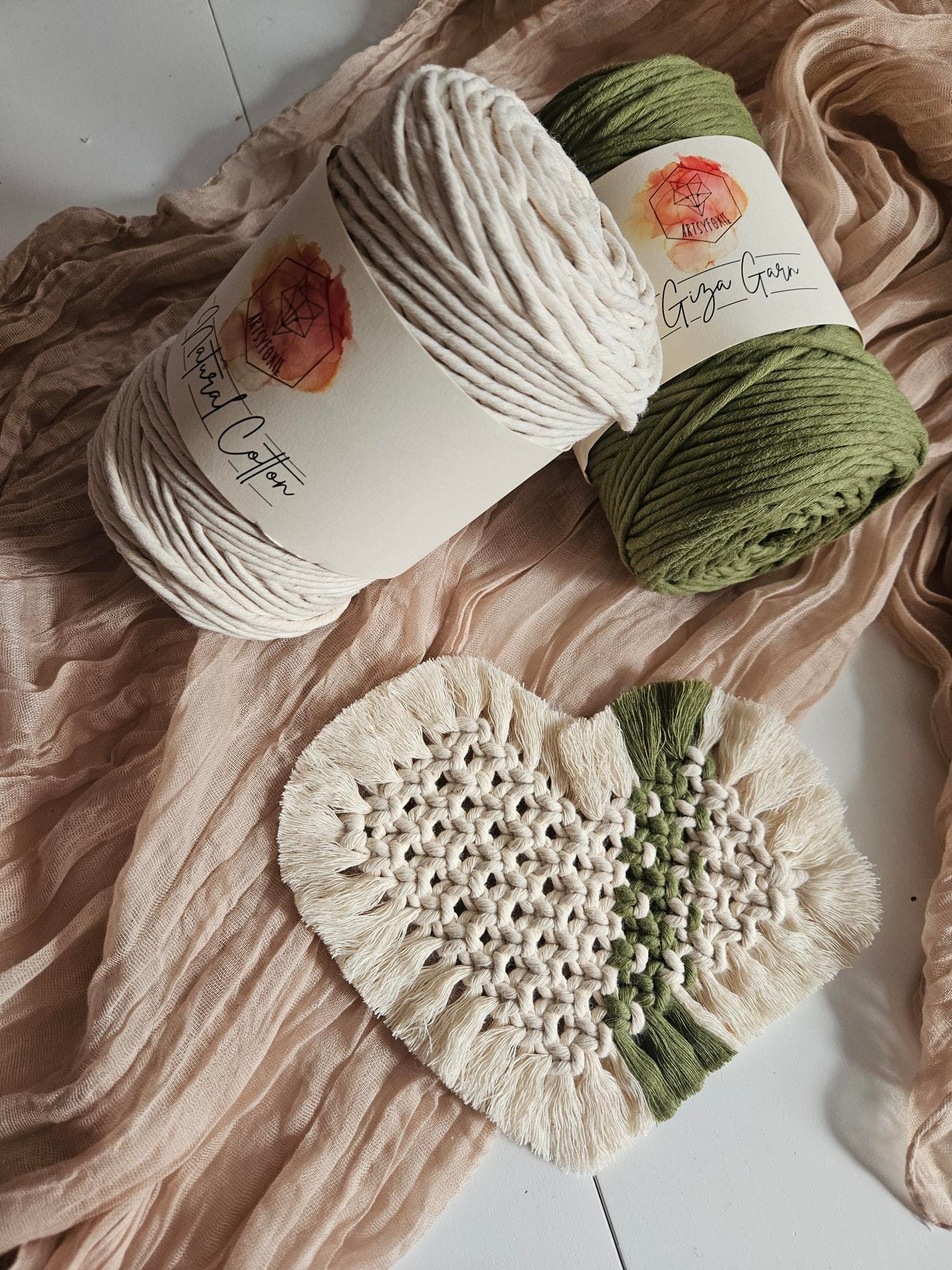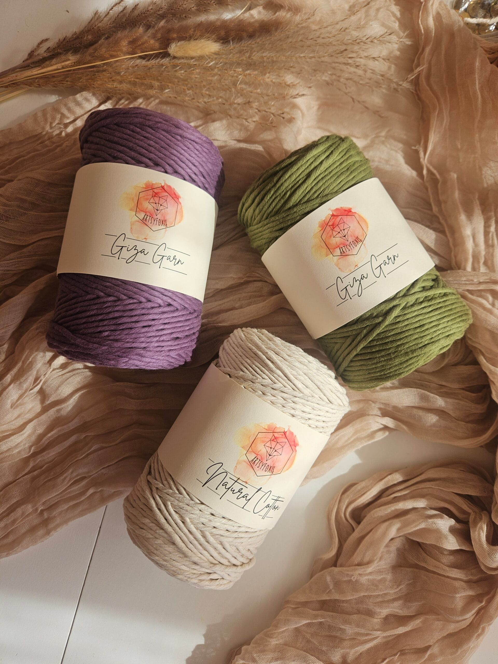 (Giza Garn aus 100% Luxus-Baumwolle in den Farben matcha und plum, Natural Cotton aus 100% Baumwolle in der Farbe nature)