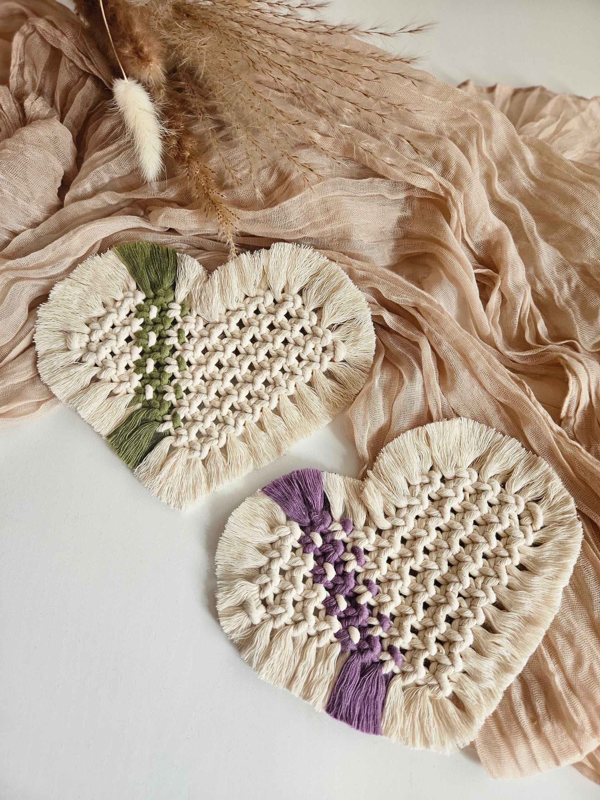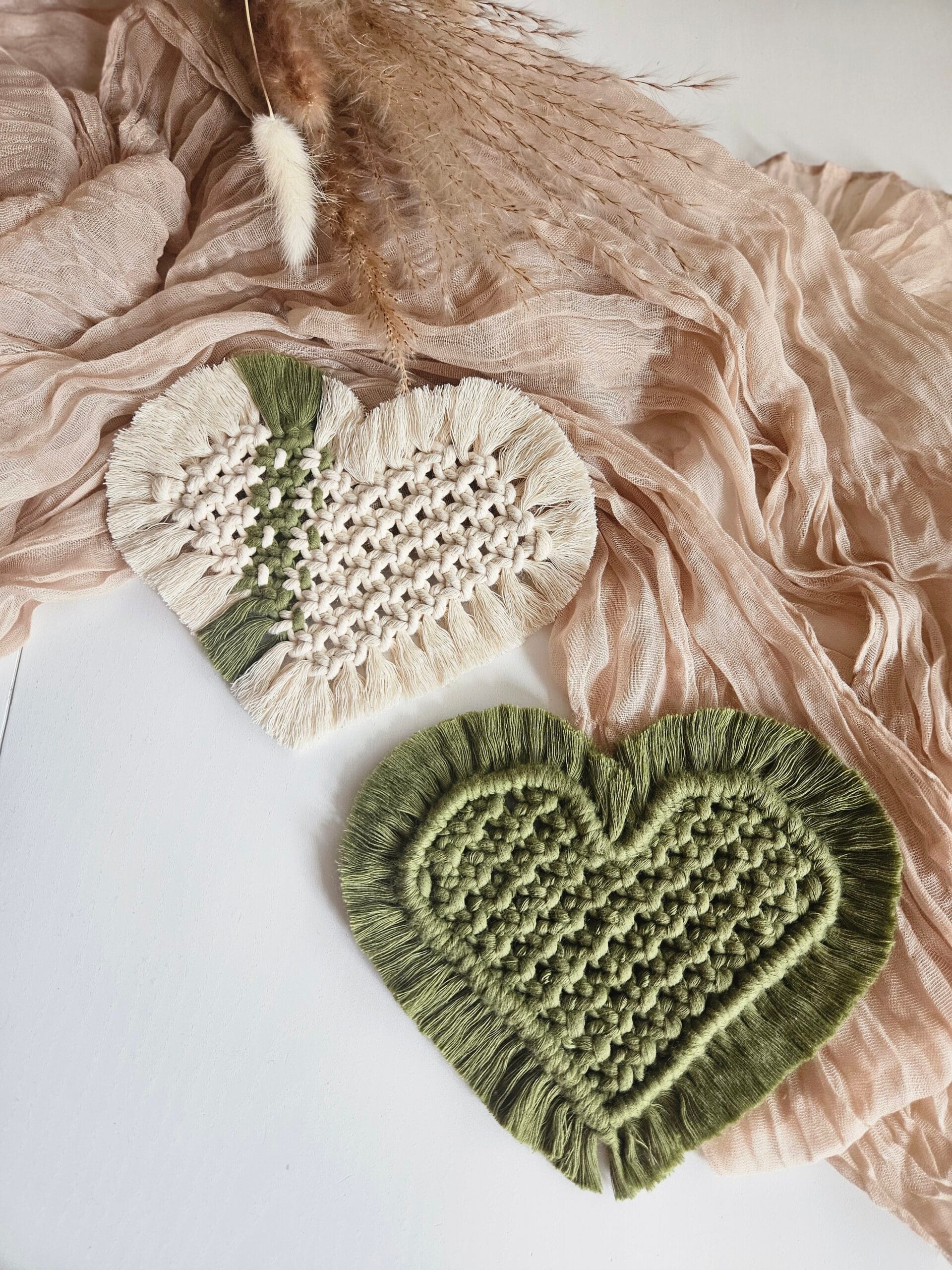 Dieser dekorative Herzuntersetzer in der Makramee Technik geknüpft ist ein tolles Projekt für AnfängerInnen.